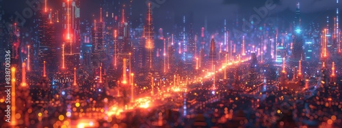 Obraz premium Futuristic Cityscape with Neon Lights and High-Tech Skyscrapers at Night