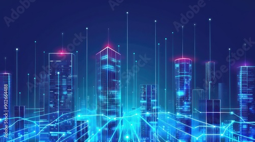 Fototapeta premium Futuristic Cityscape with Neon Lights and Interconnected Lines