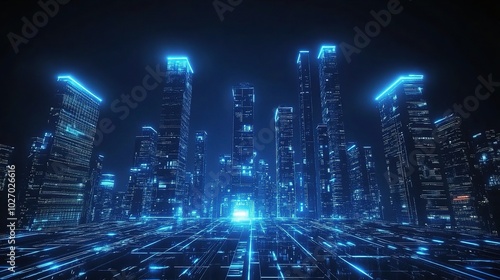 Obraz premium Futuristic Cityscape with Neon Lights and Skyscrapers