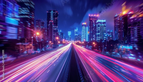 Fototapeta premium Futuristic Cityscape With Neon Lights and Streaks of Light