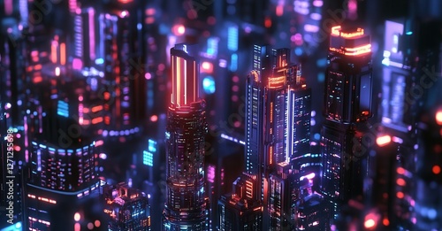 Obraz premium Futuristic cityscape with neon lights illuminating modern skyscrapers,...