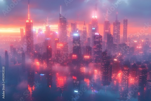 Obraz premium Futuristic Cityscape with Neon-Lit Skyscrapers and Vibrant Nighttime Atmosphere