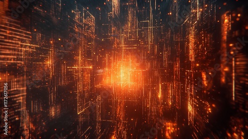 © Abdul, Naklejka premium Futuristic Cityscape with Neon Vertical Lights