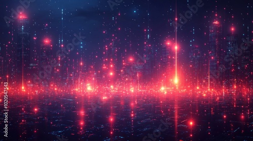 © gita, Obraz premium Futuristic Cityscape with Red Lights
