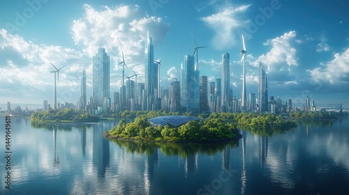 Naklejka premium Futuristic Cityscape with Renewable Energy