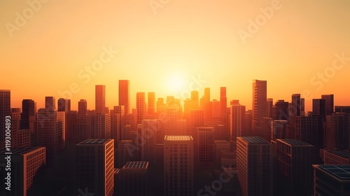 Obraz premium Futuristic Cityscape with Solar-Powered High-Rises Bathed in Golden Sunlight