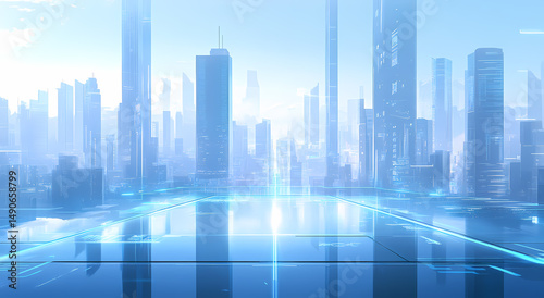 © Longo, Fototapeta premium Futuristic Cityscape with Technological Platform