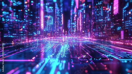 Fototapeta premium Futuristic cityscape with vibrant neon lights.