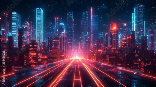 © Joachim, Fototapeta premium Futuristic cityscape with vibrant neon lights and glowing skyscrapers at night