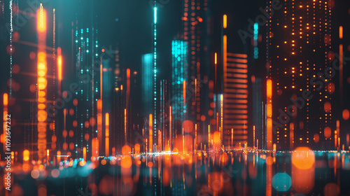 Fototapeta premium Futuristic cityscape with vibrant orange and blue light streaks.