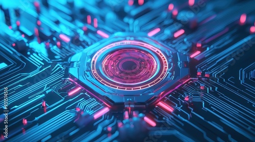 Fototapeta premium Futuristic close-up of a circuit board with glowing elements, showcasing...