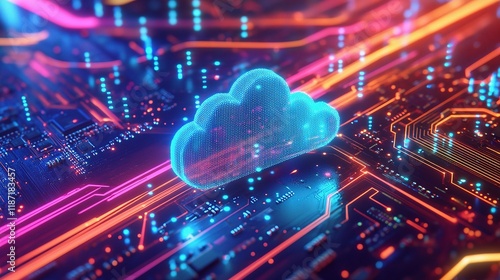 Obraz premium Futuristic Cloud Data Storage Concept with Vibrant Circuit Lines