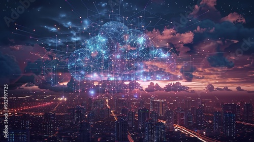 Naklejka premium futuristic cloud technology, Digital informational technology web futuristic hologram with cloud