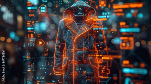 © studio clever, Obraz premium Futuristic Coat Design with Digital Interface - Generative AI