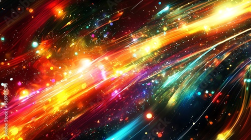 © Raitalinn, Fototapeta premium Futuristic colorful lines and lights form an abstract background, alive with dynamic energy.