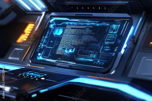 Fototapeta premium Futuristic command prompt on a holographic computer screen, featuring...