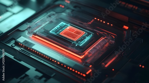 © Berkah, Obraz premium Futuristic Computer Processor Close Up Display