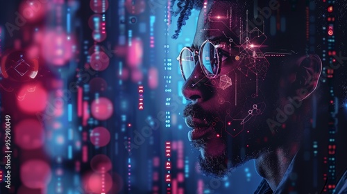 © peacehunter, Fototapeta premium Futuristic Concept of Artificial Intelligence and Technology with Digital Data and Human Profile