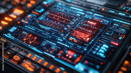 © reza, Obraz premium Futuristic control interface displaying data and analytics.