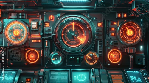 Obraz premium Futuristic Control Panel: A 3D Render of a Sci-Fi Interface