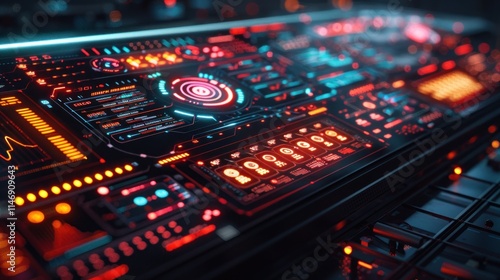 Obraz premium Futuristic Control Panel: A high-tech interface with glowing neon lights,...