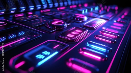 Fototapeta premium Futuristic Control Panel Display with Vibrant Neon Lights and Buttons