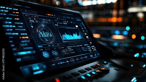Obraz premium Futuristic Control Panel Displays Data Graphs And Metrics