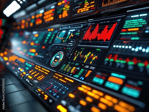 Obraz premium Futuristic Control Panel Displays Data Streams with Dynamic Charts and...