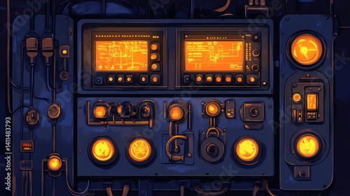 Obraz premium Futuristic control panel glows in dark spaceship