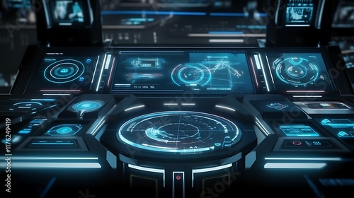 Obraz premium Futuristic Control Panel With Advanced Technology Displays