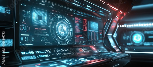 Obraz premium Futuristic Control Panel With Blue and Red Lights