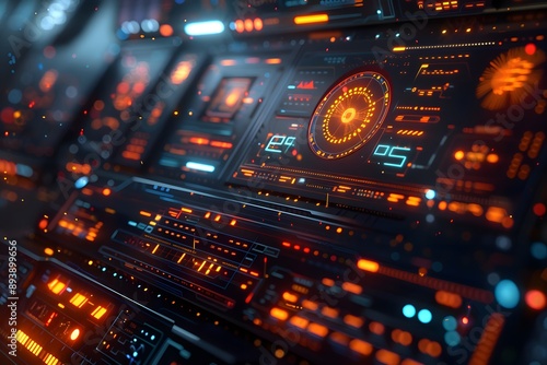 Obraz premium Futuristic Control Panel with Glowing Interfaces and Data Displays
