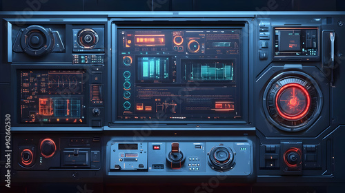 Fototapeta premium Futuristic Control Panel with Glowing Lights 3D Illustration