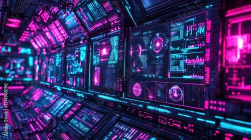 © Nurul, Obraz premium Futuristic control panel with glowing screens displaying data
