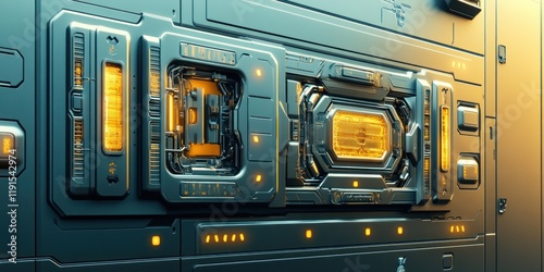 Obraz premium Futuristic Control Panel with Illuminated Interface in a Sci-Fi Setting