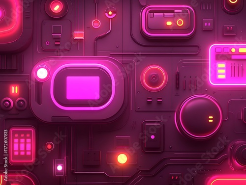 Fototapeta premium Futuristic Control Panel with Neon Lights and Buttons