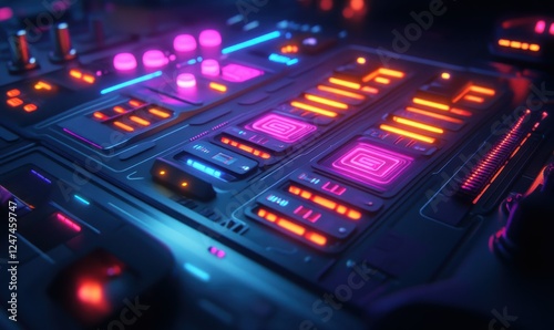 Obraz premium Futuristic control panel with vibrant neon buttons, symbolizing innovative...