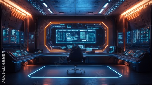 © wiwat apisithpinyo, Obraz premium Futuristic Control Room.