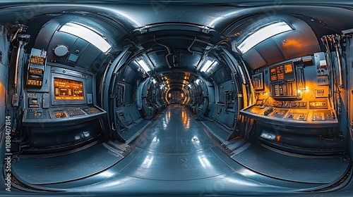 Fototapeta premium Futuristic Control Room Corridor Interior Design