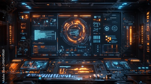 Obraz premium Futuristic Control Room: Sci-Fi Interface and Technology
