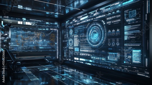 Fototapeta premium Futuristic Control Room: Stunning 3D Render of a Digitally Enhanced Interface. AI Generated
