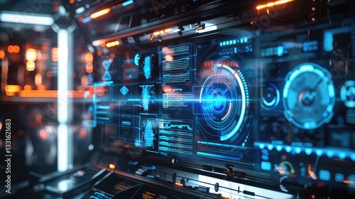 Fototapeta premium Futuristic Control Room with Advanced Digital Interfaces