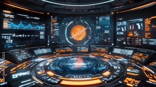 Obraz premium Futuristic Control Room with Advanced Technology and Data Visualization