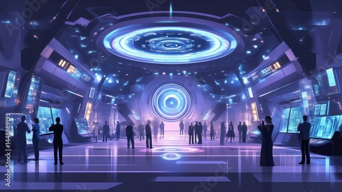 Obraz premium Futuristic Control Room with Advanced Technology and Illuminated Interfaces