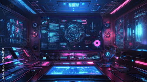 Obraz premium Futuristic Control Room with Advanced Technology Display