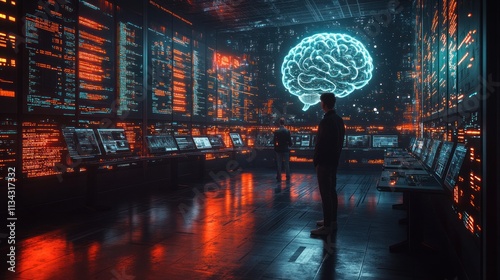 © artbot, Obraz premium Futuristic control room with brain visualization