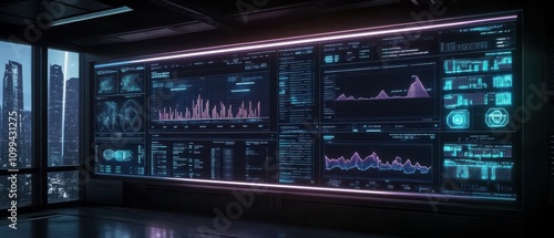 © LiaSyafitri, Obraz premium Futuristic control room with data visualization screens.