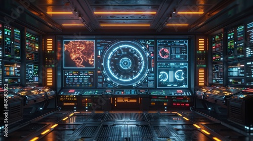 Obraz premium Futuristic Control Room with Digital Displays