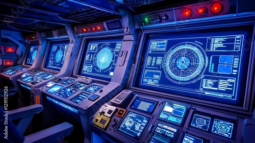 © Nattapol, Obraz premium Futuristic Control Room with Digital Displays and High-Tech Console