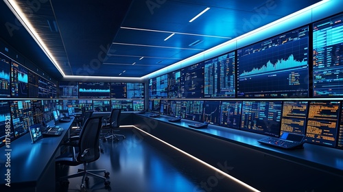 Fototapeta premium Futuristic Control Room with High-Tech Monitors Display